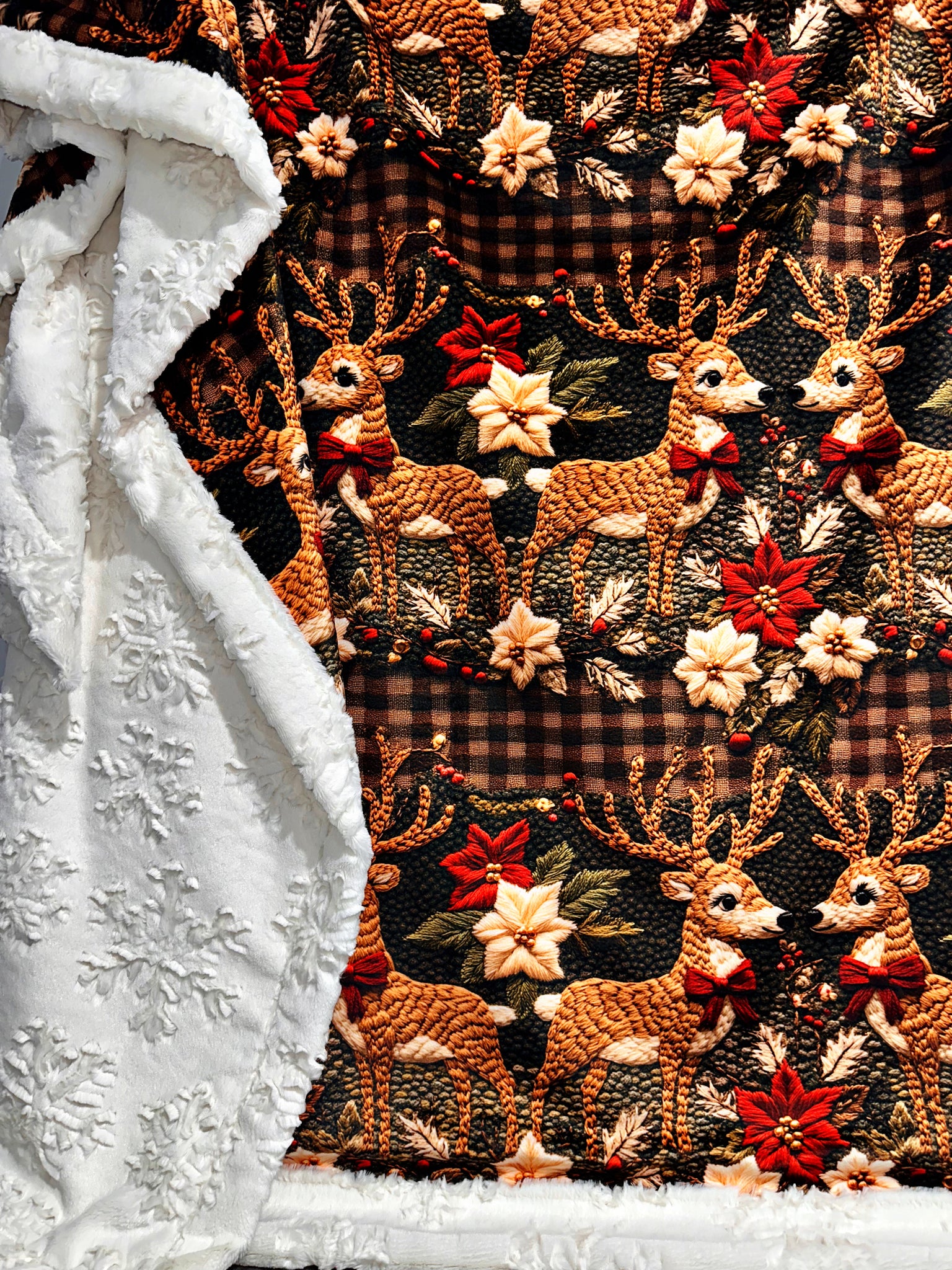 Christmas Deer On Snowflakes XL Adult Size