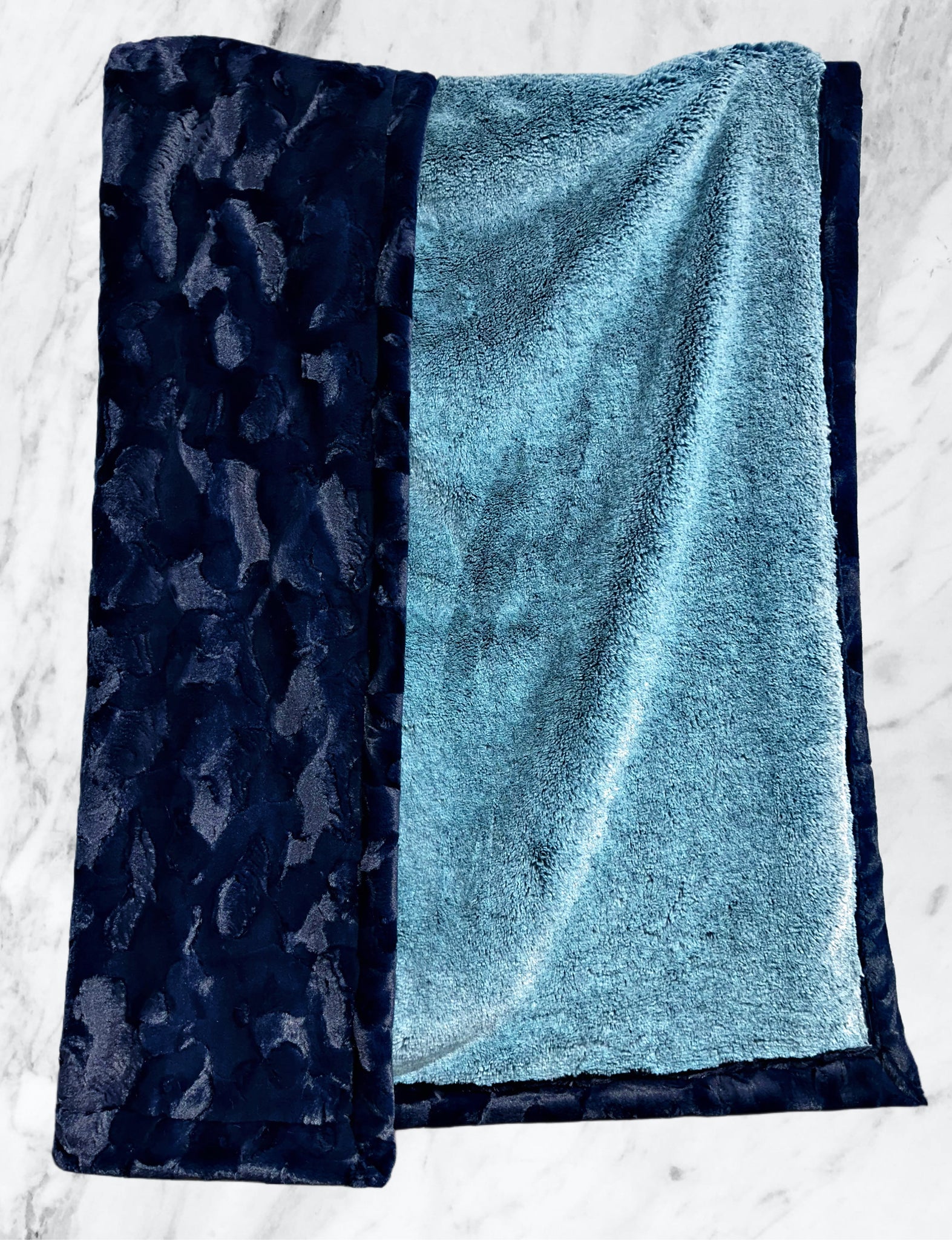 Extra Luxe Mallard Frosted Arctic Fox + Navy Hide XL Adult Size