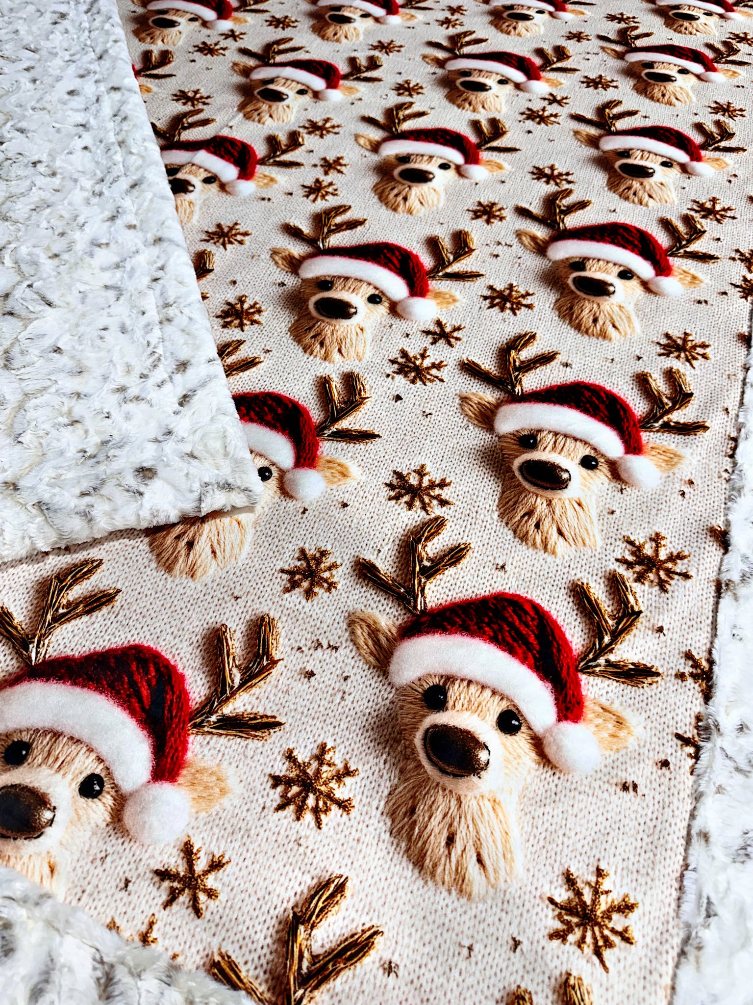 Faux Embroidered Christmas Deer XL Adult Size