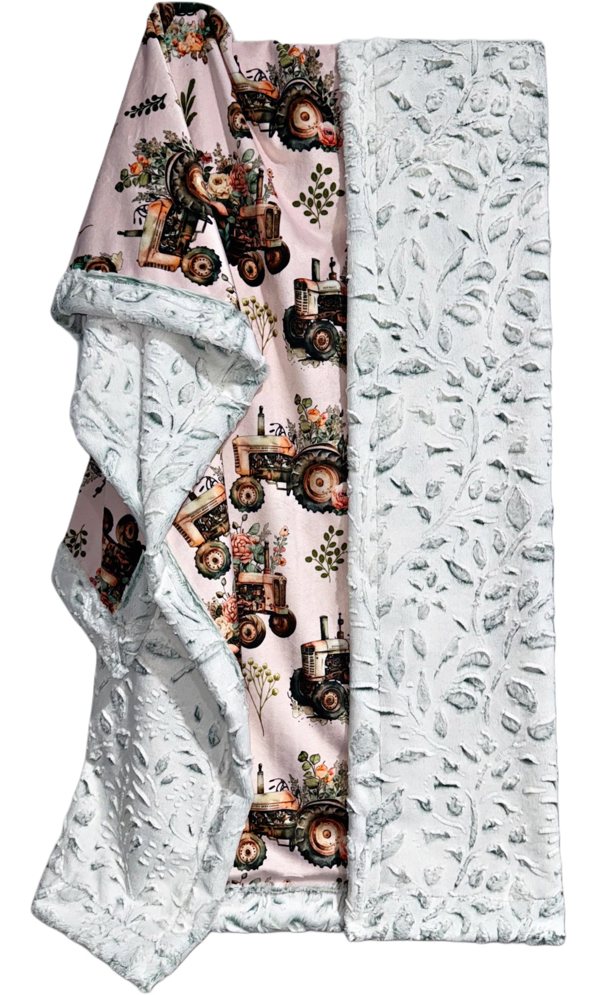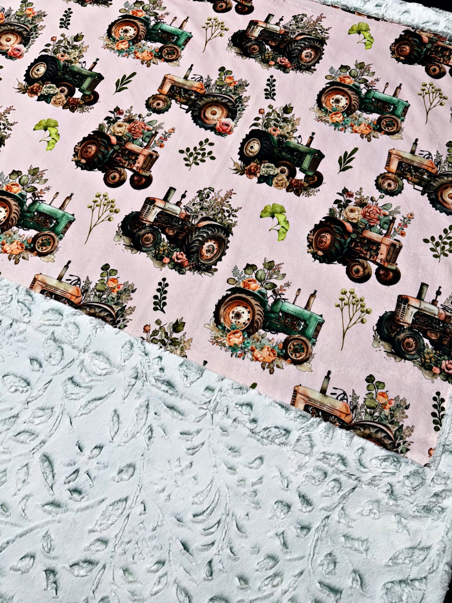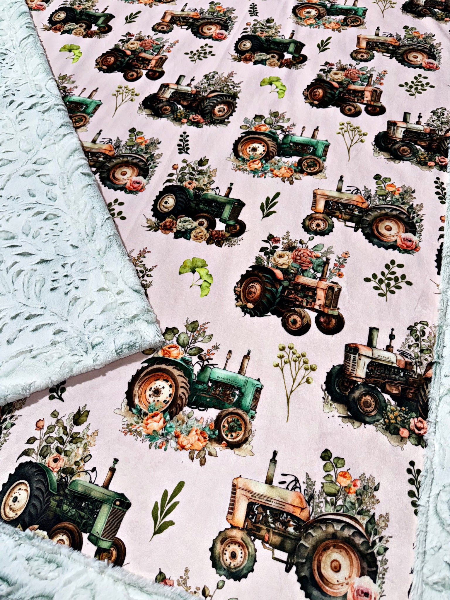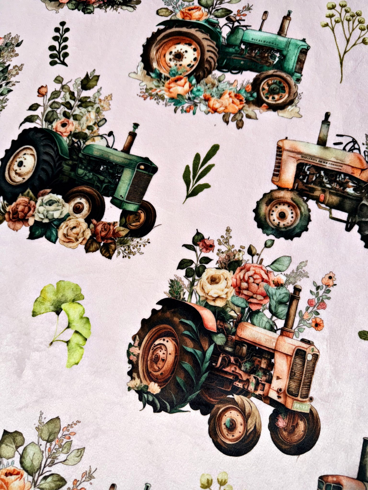 Floral Tractors On Frosted Juniper Poppy XL Adult Size